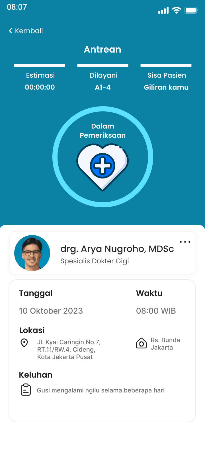 After mapping the user flow, we designed a wire flow and finalized it as a mockup. We updated the layout, naming the revamped Service Registration to Online Registration Process (Proses Pendaftaran Online), and put it as the main feature on the homepage for easy access. A track record system was added, letting users track their treatment steps from queue registration to hospital examinations.