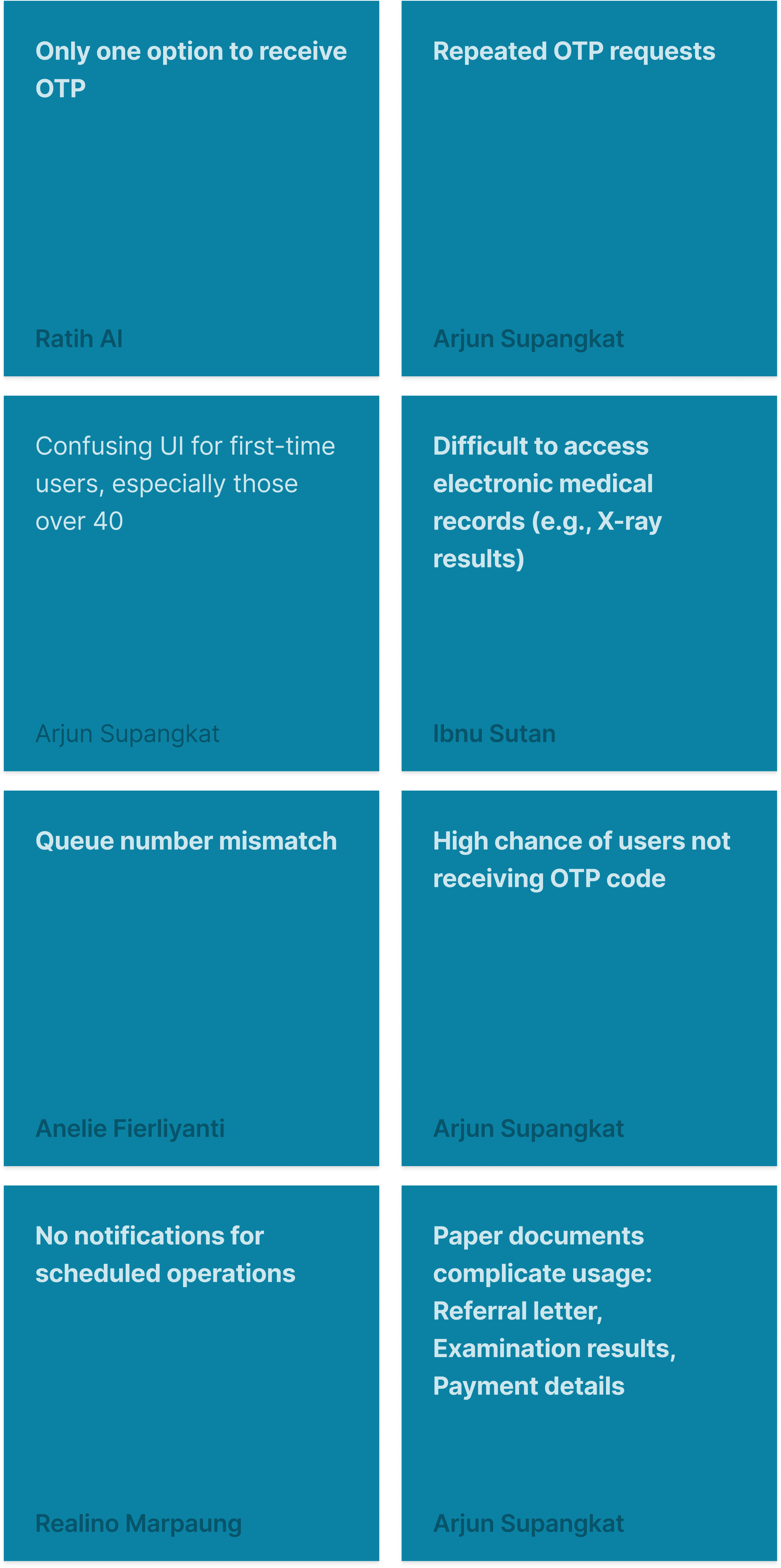 To ensure the revamped Online Registration Process (Proses Pendaftaran Online) feature meets the needs of BPJS users on Mobile JKN, we conducted usability testing. We invited three users who had previously used Mobile JKN to test the revamped feature. After the trial, we collected feedback from each user about any difficulties or issues they experienced. Their main feedback included: